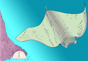Конечно, не все Морские Дьяволы достигают такого колоссального семиметрового размаха крыльев и двутонного веса. Но в их роду может встретиться манта и повнушительней. Впрочем, для девочки, увидевшей глубоководных жителей впервые, и этого было предостаточно.