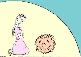 Девочка была крайне удивлена такому способу спасения. Сама бы она никогда не додумалась до такого - что её близость может действовать на кого-то пагубно. Но она отошла в сторонку, как Ёжик попросил, и воздух переместился вместе с ней, освободив Морского Ёжика из плена. Он облегчённо вздохнул:
