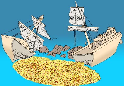 И по его велению восьмирукие осьминоги потащили из Владычных кладовых несметные сокровища, снятые с затонувших кораблей. Сокровища были до того неисчислимы, что восьмируким было не управиться самостоятельно, и на помощь были призваны десятирукие - кальмары, и каракатицы.